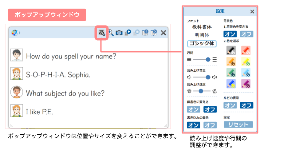 内容は紙の教科書と同一(紙の紙面データおよび付属するQRコンテンツ)で、各種特別支援機能や書き込み・拡大機能などを使うこともできます。