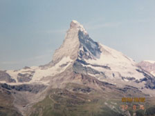ケーブルカー,ロープウェイを乗り継いで展望台へ。マッターホルンの素晴らしい眺めに魅せられる。ハイジの世界を求めて山を歩く。散策中,イギリス人グループと出会いしばし会話を楽しむ。山に魅せられ連泊。