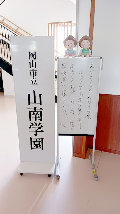 さて、岡山駅から東に車で約40分。今日の目的地、岡山県岡山市立山南学園に到着しました!