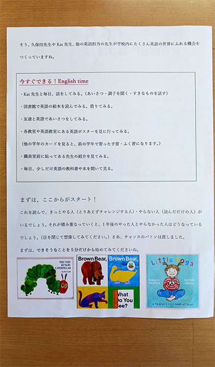 こんな掲示物を毎日見ていたら、自然と英語が大好きになりそうだね。