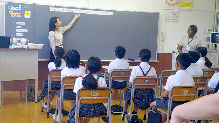 学校では、休み時間や清掃時間にも、子どもたちとできるだけ英語で短い会話をするように心がけているとのこと。