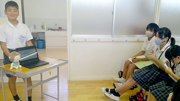 みんな元気よく、ジェスチャーを交えて、わかりやすく伝えられるように頑張って工夫した発表をしているね。