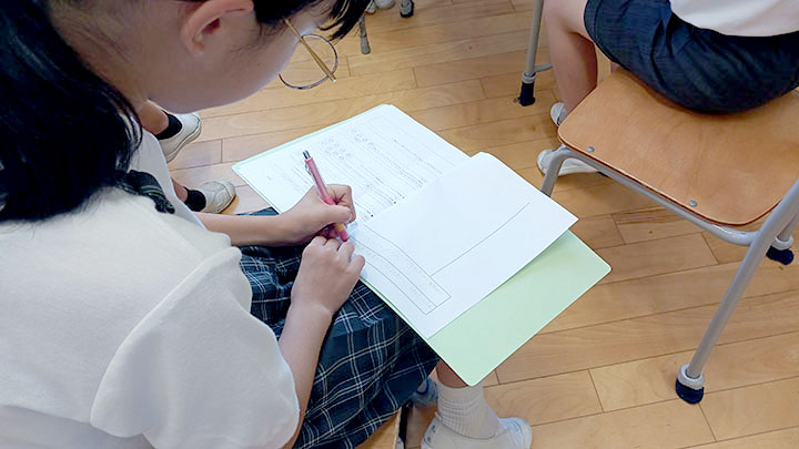 それから一生懸命、久保田先生が作ったワークシートに書き込んでいるね。