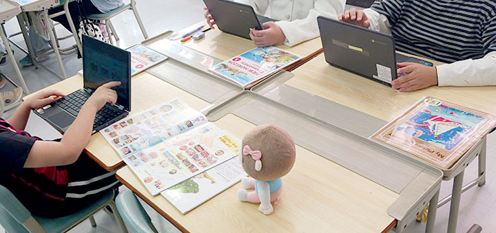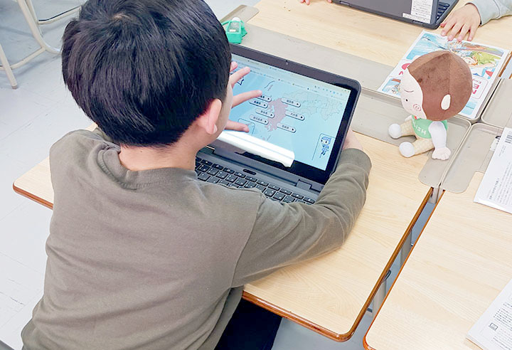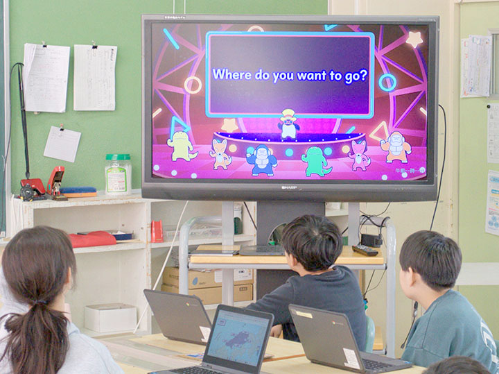 本日の授業でも、「Digital Map」を中心に「Listen and Thinkアニメ」や「Your Goal モデル映像」「Let’s Chant」など、さまざまなコンテンツを、児童が自身で使う機会をたくさん作っていました。