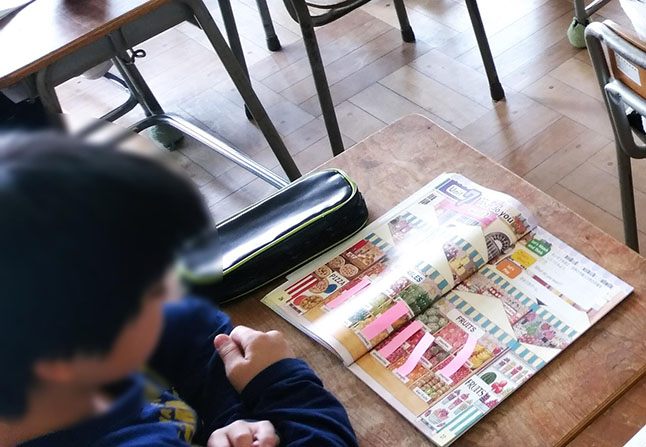 この際,“I want ~, please.”の表現の練習も欠かしません。楽しみながらも,ゴールに向かって確実に力を付けることを狙っています。