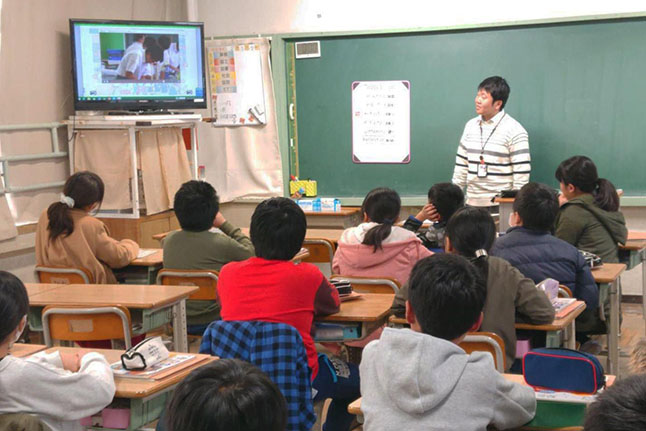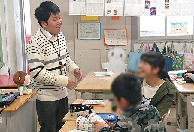 担任の石上達矢先生は,民間企業に就職後,子どもに関わる仕事がしたいと大学の通信課程で学び,現在10年目。密なコミュニケーションと,何のために何をするのかを意識して,思考を働かせる授業を心がけているのだそうです。