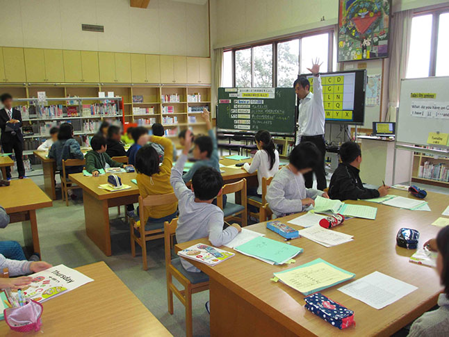 ちなみに,英語の授業は全て荒井先生が実施していますが,他教科担当の先生方も英語の指導力を身につけられるよう,外国語の校内研修を実施しています。荒井先生の授業を児童役で体験するなど,どのように英語の授業を進めていけば良いか考える機会を作っているそうです。