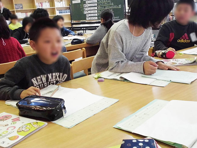 児童にはいろいろな人とコミュニケーションができる力をつけてほしいと思っているそうです。週一回来校するALTやネイティブと,自信をもって会話ができるようになることを目指しています。