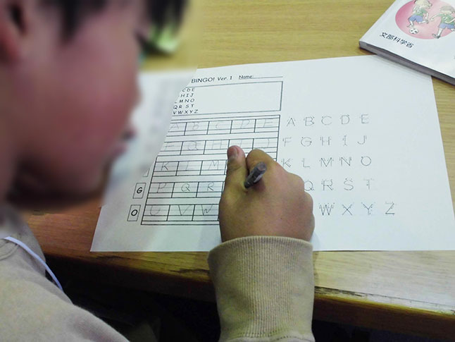 ふり返りの後,帯活動のビンゴゲームを行いました。高学年はアルファベットビンゴを毎時間実施しており,毎回とても盛り上がるそうです。