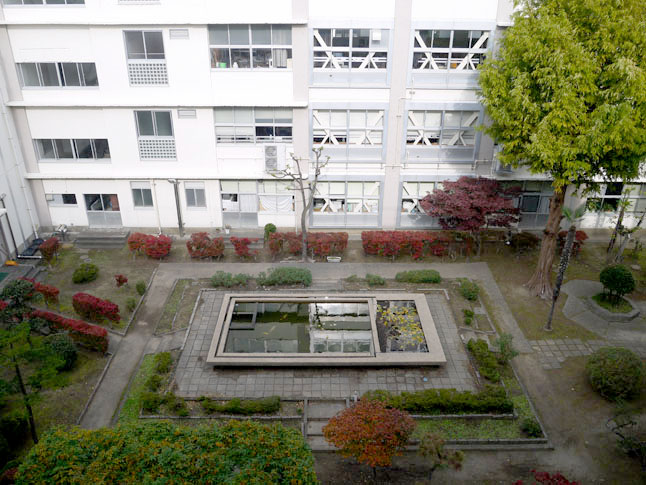 校舎の中庭の中心に池がある,とってもすてきな構造です。