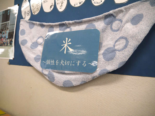 そしてふと教室の後ろを見ると,掲示板にこのような文字が。さすが米どころ,新潟県!