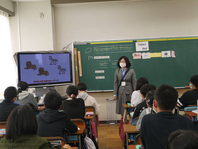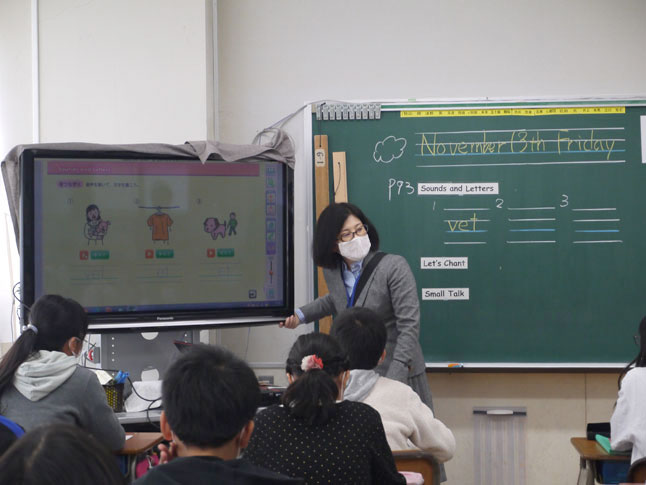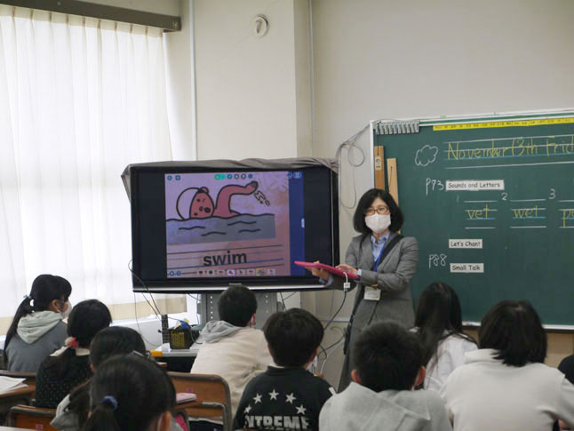 続いてSounds and Lettersの活動です。wetの単語では,「あ,ウェットティッシュのwetか!」といった気付きも見られました。すごい! 神田先生によると,最後にこの活動を行うと,時間がなくなり中途半端になってしまうことがあったので,思い切って最初で行うようになったそう。