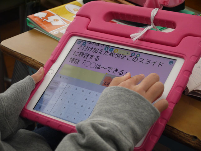 神田先生は授業後,「やはり英語の授業で大事なのはコミュニケーション活動なので,端末を使わせる時間の設定には気を配っています。録音して提出するようになり,今までよりがんばって話すようになりました。うまく表現できていない箇所も次の時間までに確認でき,個別に指導し,児童も自分が話したいことを自信をもって言えるようになってきました。録音すれば記録に残す評価に使うこともできますよ!」と,デジタル端末を活用するコツを教えてくれました。
