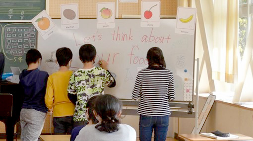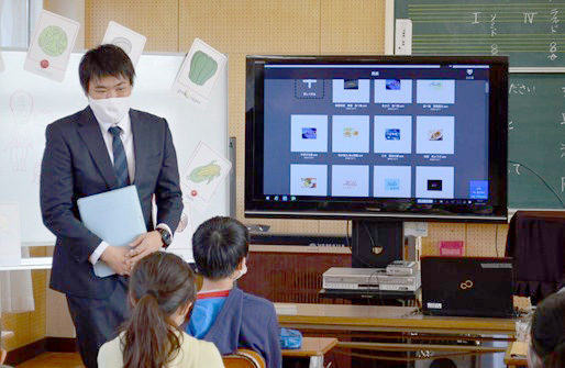 中野先生は教員9年目で,本校で外国語科主任をされています。教科化の前から高学年は70時間で指導していたため,本年度はスムーズに移行できたといいます。単元導入の際に「単元の最後には発表があるよ」と伝えることで,児童たちは授業を受けながら頭の中で原稿を作っている,と仰っていました。
