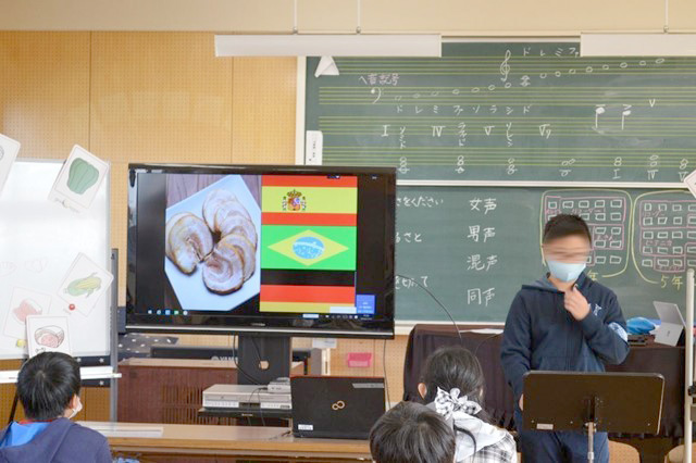 発表を聞いていると,ラーメンは人気があるようです。この児童が調べたところでは,一般的なラーメン屋さんのチャーシューの産地はスペイン,ブラジル,ドイツなんだそう。よく調べてくれました。Good job!