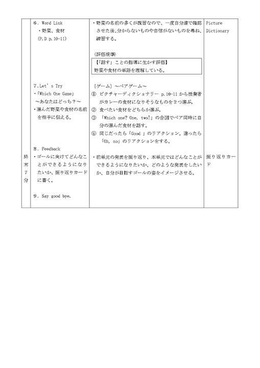 このあとの授業で開催される「Original Curry Contest 2021」に向けて、本時では、カレーライスの材料になる食べ物の単語を確認し、「どっちの食材を食べたいか?」というトークをペアゲームを通して学習します。