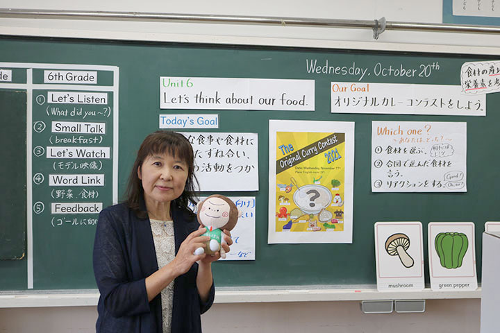 千葉道子先生は水沢小学校に赴任されてから、外国語専科として務められています。もともと英語の教員免許を持っていたものの、初めのうちは指導に苦労されることもあったようです。しかし、「型を与え、手順をしっかりと示す」「ゴールを大切にして授業を組み立てる」「どの子も参加できる授業づくりを」という考えのもと実践を積み重ねられました。