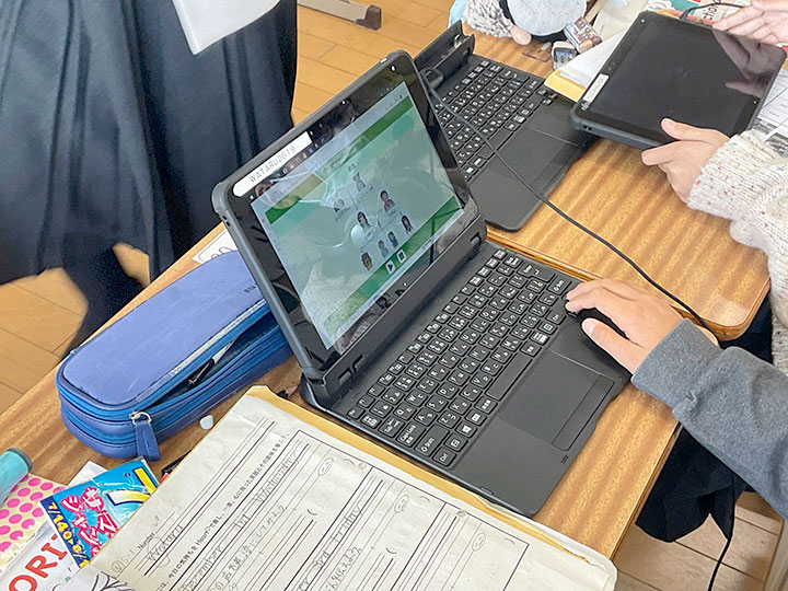 ただ、ICT機器は接続や動作がうまくいかないこともあります。そんなとき、二里小学校では、操作が分からず困っている友達に声をかけ、児童同士で助け合いながらスキルアップをしている姿が見られるそうです。