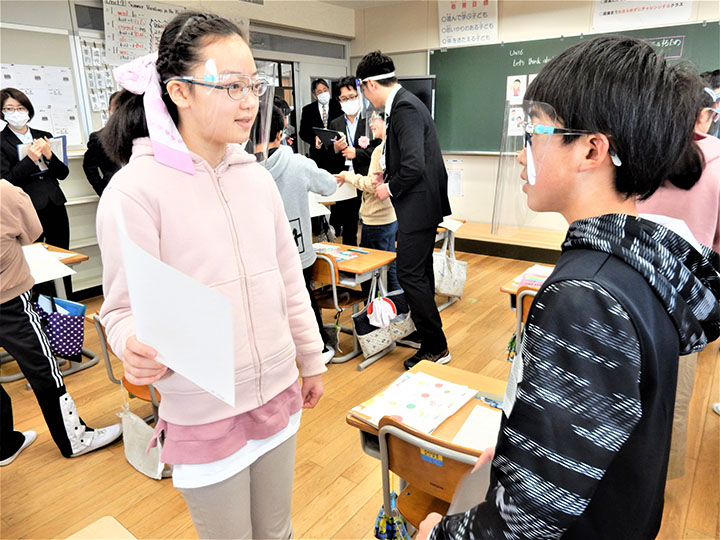 小峰校長先生は、「英語」という言葉を媒介として、子どもたちには、コミュニケーション能力を高め、国際感覚を養っていってもらいたいと願っているそうです。また、中学校の英語教員と小学校の教員が英語科、外国語科という教科で連携を深めることによって、英語嫌いの子を減らし、系統性の見える英語教育が展開され、深まりのある学習になるのではないかと考えているそうです。