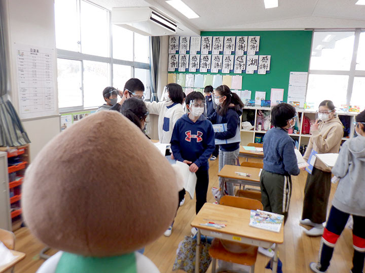 今日訪れた米小学校は、平成27年に創立140周年を迎えました。平成21年度には、学校キャラクター「よねっこマン」が誕生し、子どもたちからも、保護者の皆さんからも愛されるキャラクターとして大切に育ち現在に至るそうです。現在の児童数は216名(令和4年3月1日現在)で、毎年、増加傾向にあります。