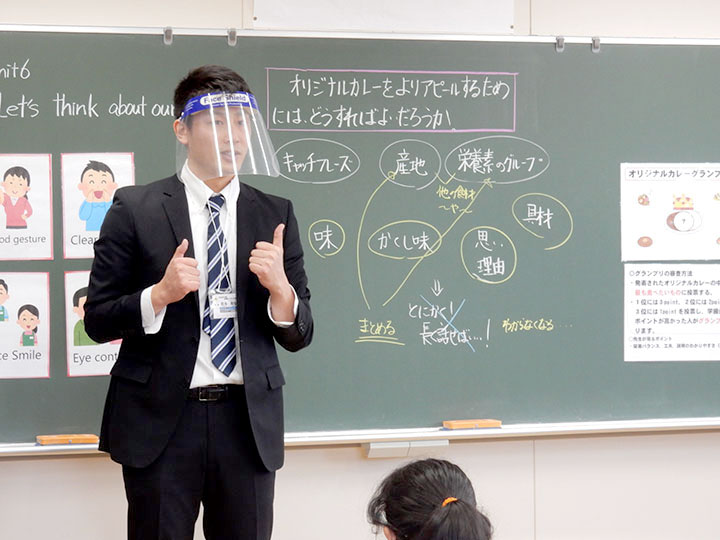 子どもたちが楽しく学び、そして、英語を使って自分の思いを伝えていけるように、まずは松本先生自身が積極的に英語を使い、コミュニケーションをとるようにしています。ALTのJohn先生と協力し合いながら、日々子どもたちと楽しく英語の授業に臨んでいます。英語の授業において、コミュニケーション能力や表現力の育成を目指して取り組んでいることが、他教科の授業のさらなる充実やよりよい学級経営にもつながっているとのこと。