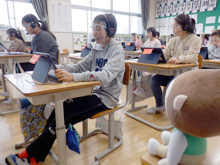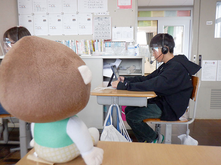 また、西郷村では、令和3年度から文部科学省の「GIGAスクール構想」により配備された1人1台のタブレットを使用し、フィリピンのセブ島とリアルタイムでつなぐオンライン英会話レッスンを村内の小学5、6年生に導入しました。