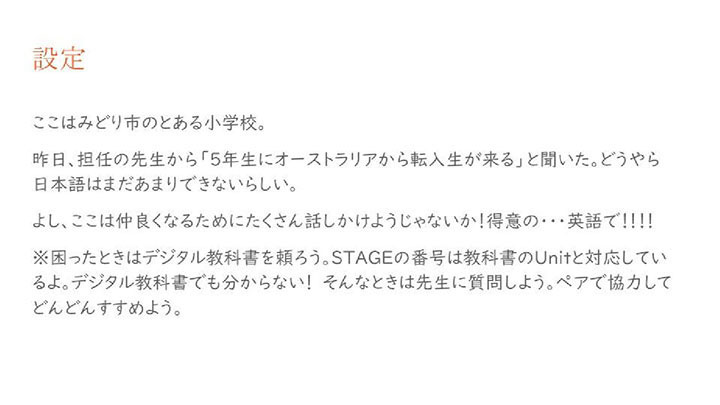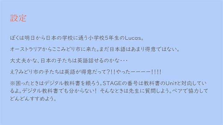 5年生のUnit5『Where is the post office?』では、本当に道案内しているような臨場感をもって子どもたちが活動していました。」