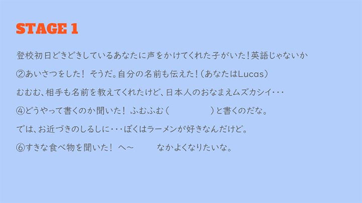 オーストラリアからの転校生役の子と二人一組で会話をするミッションです!!