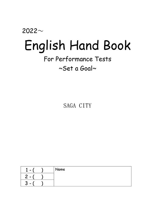 そこでは、佐賀市の研究部会で作成された「English Hand Book For Performance Tests」を使って表現の工夫をしています。中学校を卒業するときに目標とする英語力から逆算し、現在どのような力を身に付けていればよいかが確認できます。
