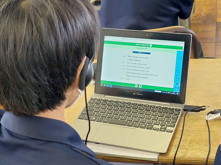 聞き取れなかった部分を、個別にヘッドセットを使って聞き直したり、友達と一緒に教科書の二次元コードを読み取って音声を何度も確認しながら学び合ったりしていたよ。