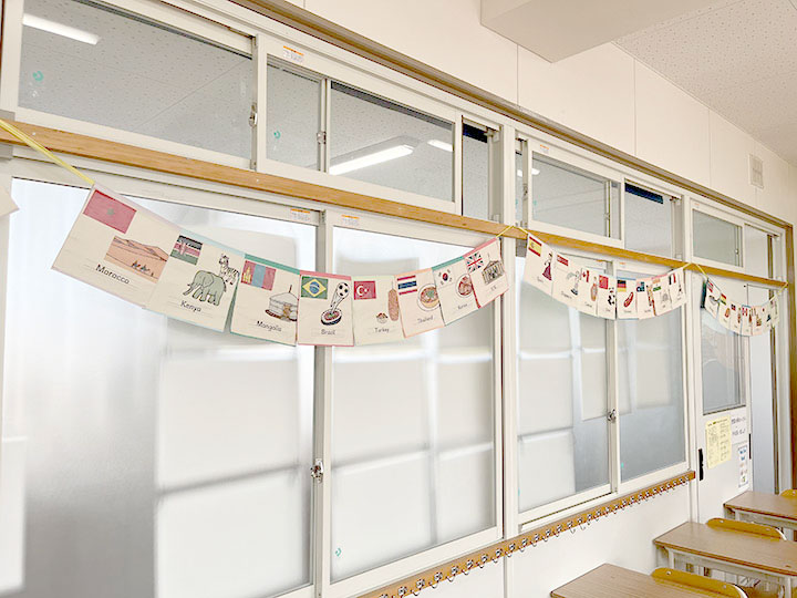 さらに、この学校で特徴的なのが、イングリッシュルーム! 英語の授業をするときは、子どもたちみんなでホームルーム教室からイングリッシュルームに移動します。