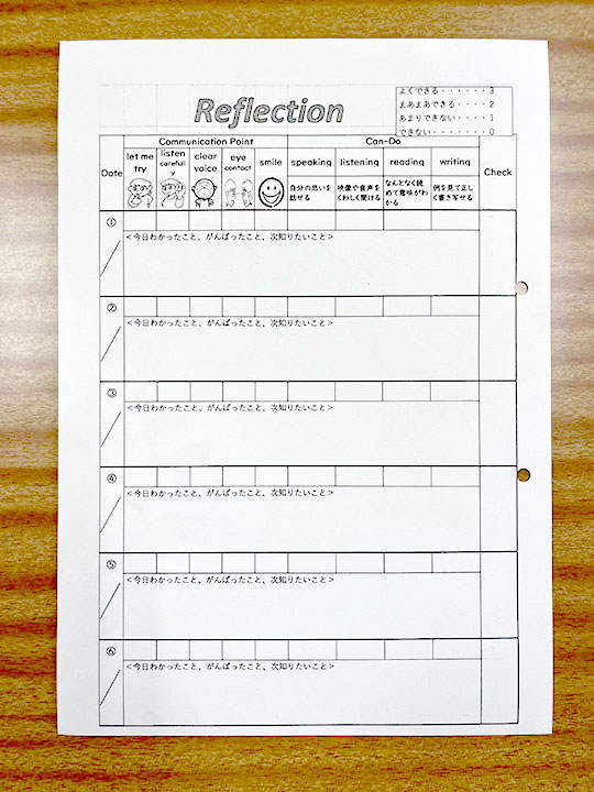 ここではオリジナルのシートを用いて、振り返りを記入していました。