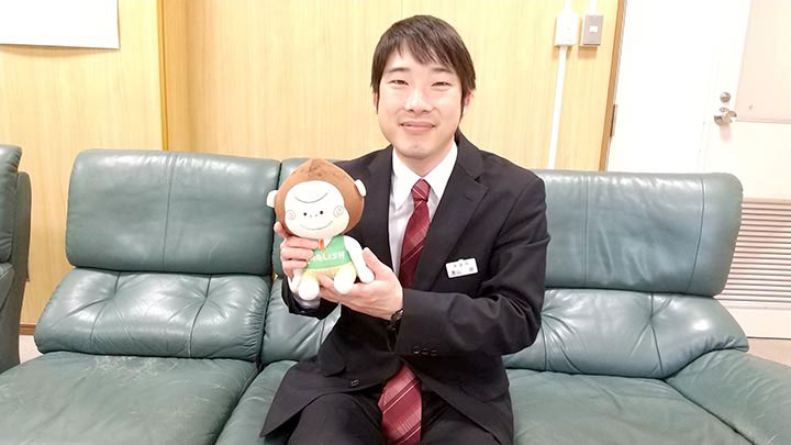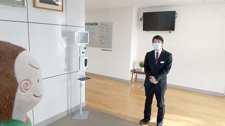学校の玄関に入ると、青山諒(あおやま りょう)先生がお出迎えしてくれました。青山先生、よろしくお願いいたします!