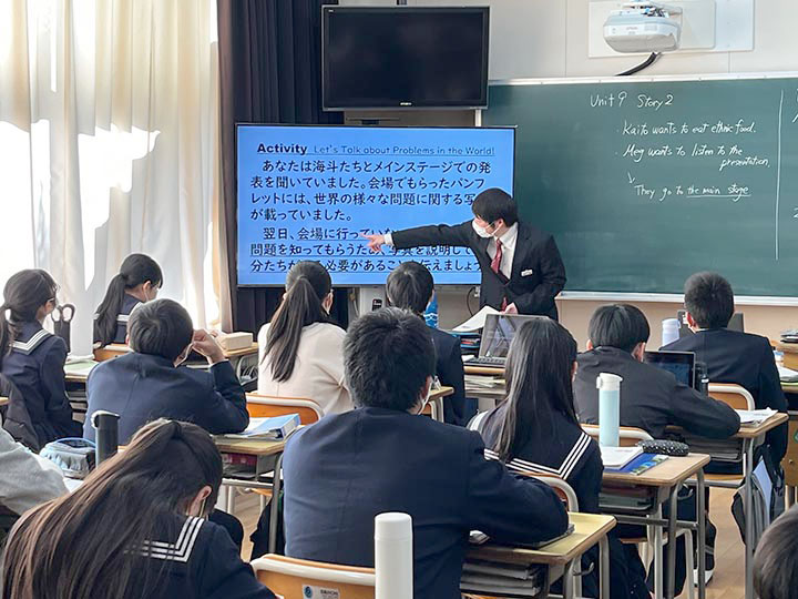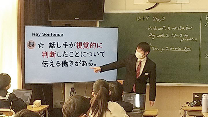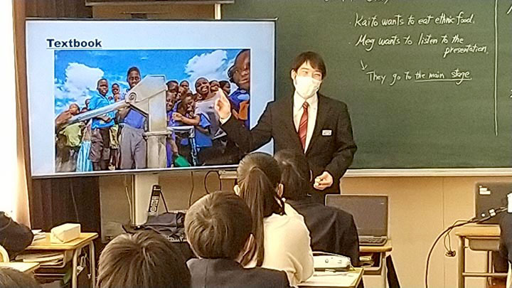 青山先生が日ごろ授業で目指していることは「机の上だけではなく、教室の外に出て使える英語を教える」こと。英語はあくまでもコミュニケーションのツールで、実際に使えなければ意味がないものなんだね。また自分の思いを表現することの楽しさを、英語を通じて生徒に教えたいそうです。