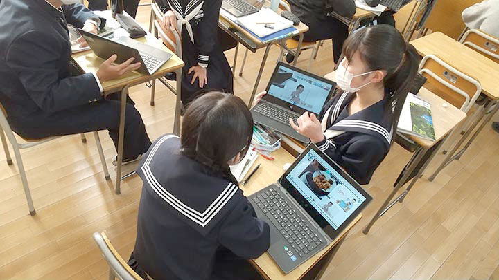 例えば、修学旅行ではグループごとに探究テーマを設けて、テーマに合わせた場所を訪ねたり、フィールドワークをしたりするそうで、主体的に活動することが身についているんだね。