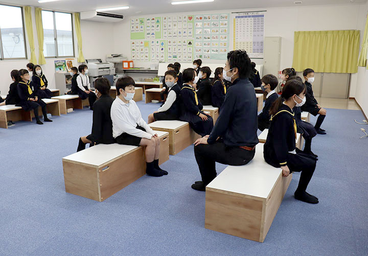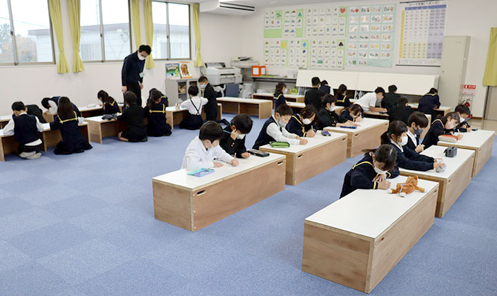 令和4年の4月からは、多目的室を1年生から3年生が使う「English room」としても開室して、特別な机を設置したんだって。