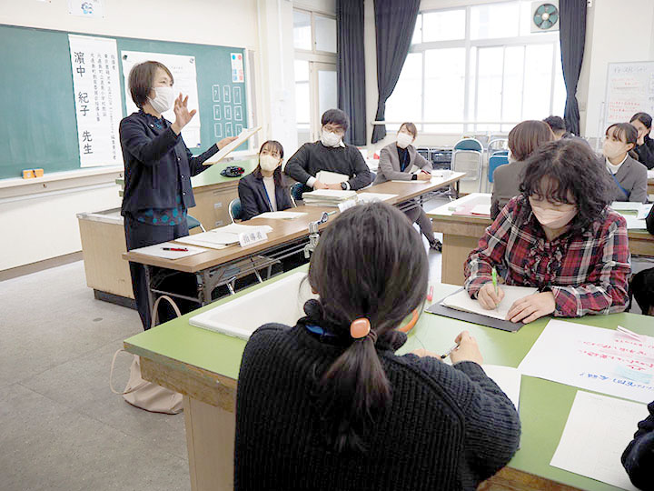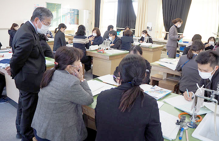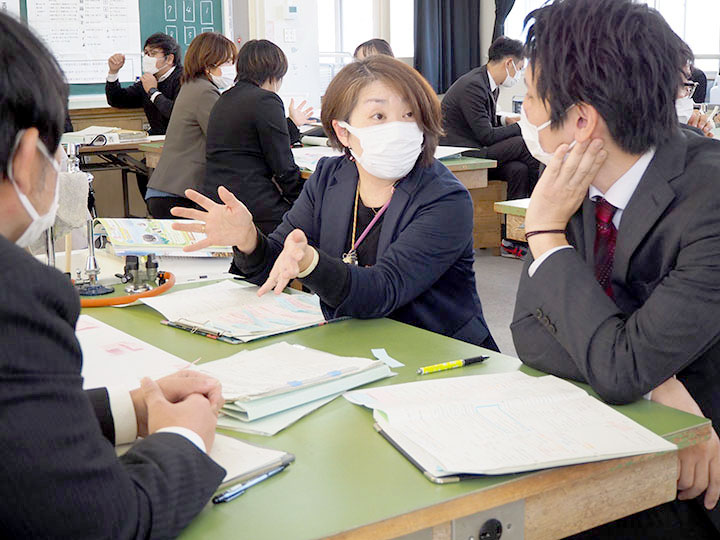 「リレー式授業づくり」といって、1組から4組まで授業日をずらして、同じ時間の授業を何度も先生たちが見られるやり方なんだ。