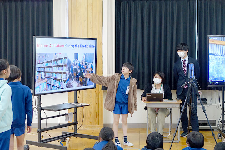 日本語を介さず、英語で堂々と質問する姿から、普段の小学校英語の授業で、