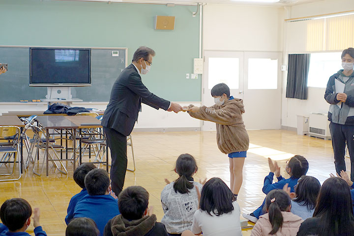 稲川修(いながわ おさむ)校長先生よりその頑張りを評して、賞状が授与されます。