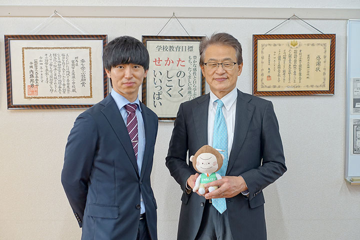 合同授業終了後、稲川修校長先生、坂口潤(さかぐち じゅん)先生にインタビューしました!