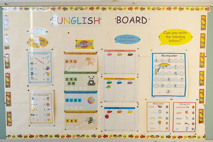 1、2年生向けの「ENGLISH CAFE」という取り組みもしています。English roomでゲームなど楽しい活動をしながら、英語に親しめるように工夫しています。