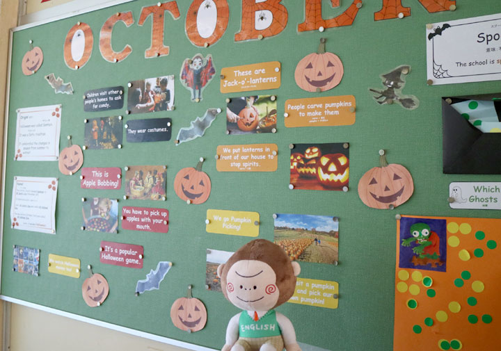 そして体育館に向かう途中の廊下には、ALTの先生お手製の掲示板を見つけました!