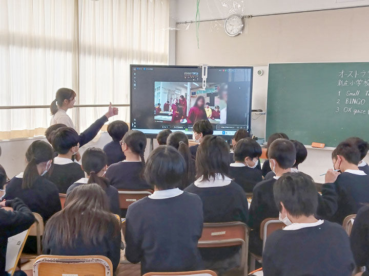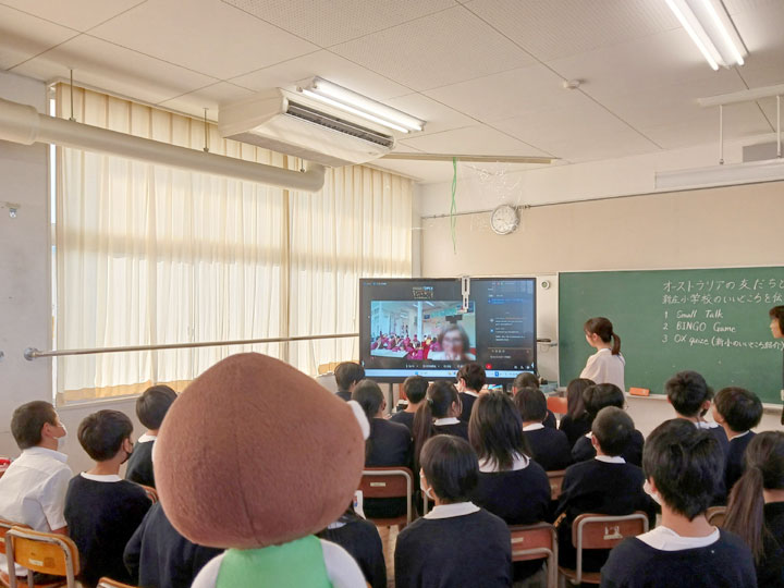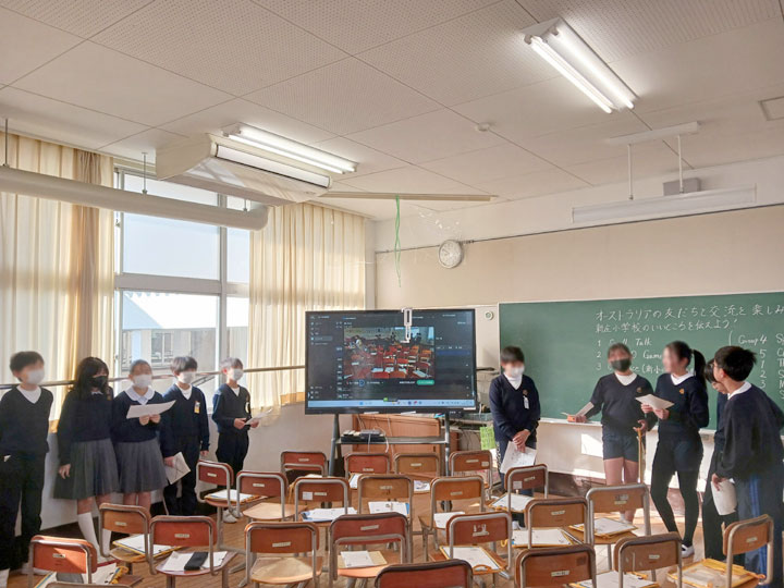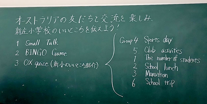 今日は、オーストラリアのビクトリア州にある小学校と二度目のオンライン交流なんだって。6年2組のみんなが、新庄小学校に関するクイズを出すことになっているから、みんな事前に準備や練習をしているよ。