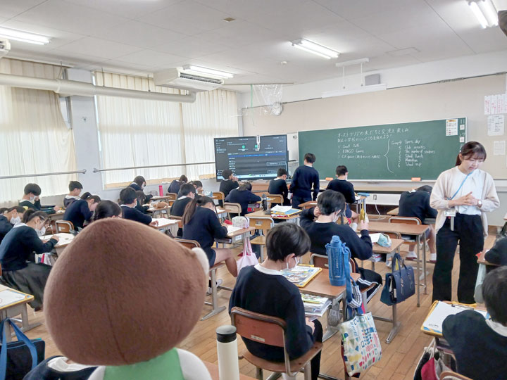 茂木先生は教師になって4年目。英語が専門だけど、実は小学校、中学校、高校と英語は苦手な教科だったんだって。大学で改めて英語を学んで、カナダなど海外で言葉が通じる経験から楽しさを見出し、英語を学ぶことが楽しくなったそうです。