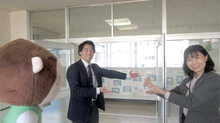 玄関で中西美紀(なかにし みき)校長先生と、授業を見せていただく鈴木優太(すずき ゆうた)先生に出迎えていただきました。本日はよろしくお願いいたします!