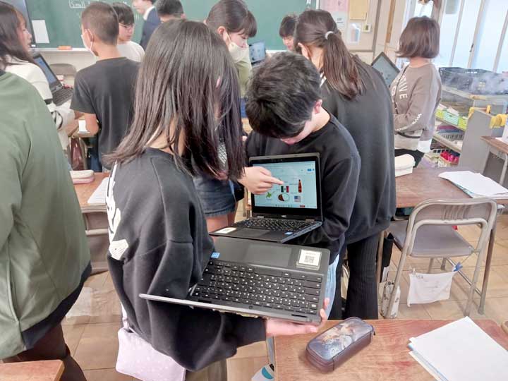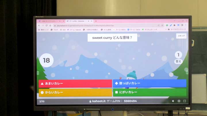 実は、授業の最後に行われる「Kahoot!」を使ったクイズ大会に、友達が発表したメニューや具材の産地の情報が出題されるんだって。