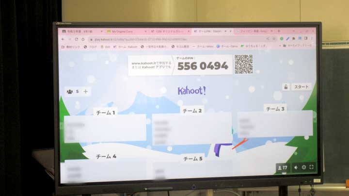 今回はチーム戦なので、まずはチーム決め。5チームに分かれて競いますが、子どもたちがPCからエントリーするとランダムにチームが割り振られるそうです。