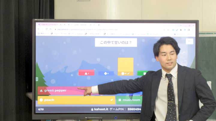 それから今日の授業のみどころはもうひとつ! 鈴木先生が「Kahoot!(カフート)」を使用した授業を行います!