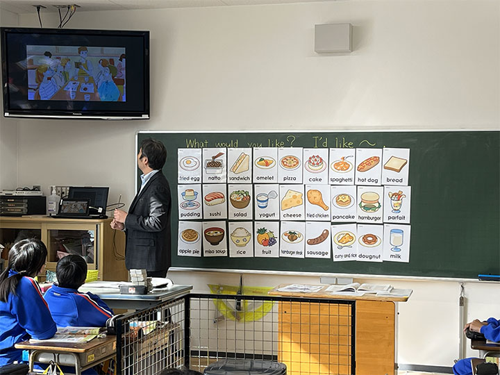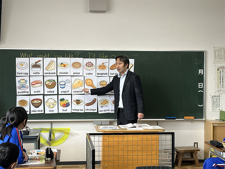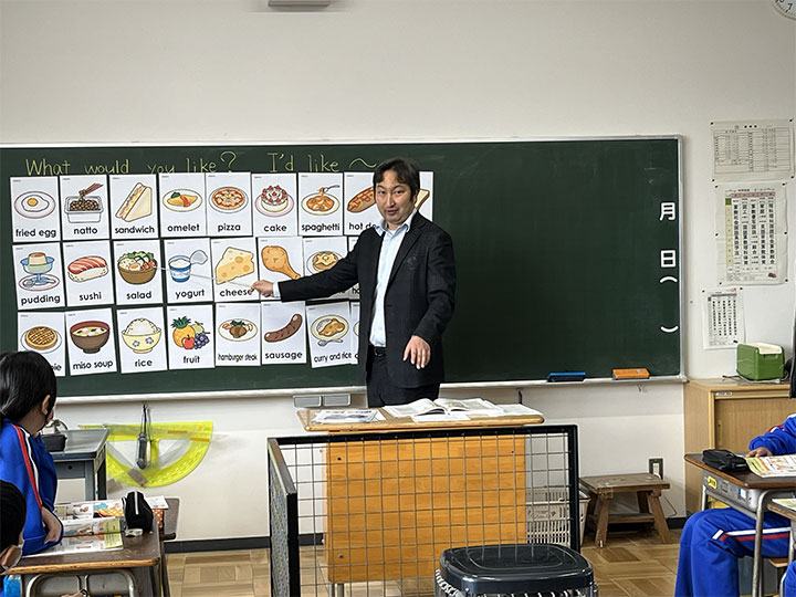 西本先生は19年目。英語専科は2年目で、3~6年生の英語の授業を全て受け持っています。