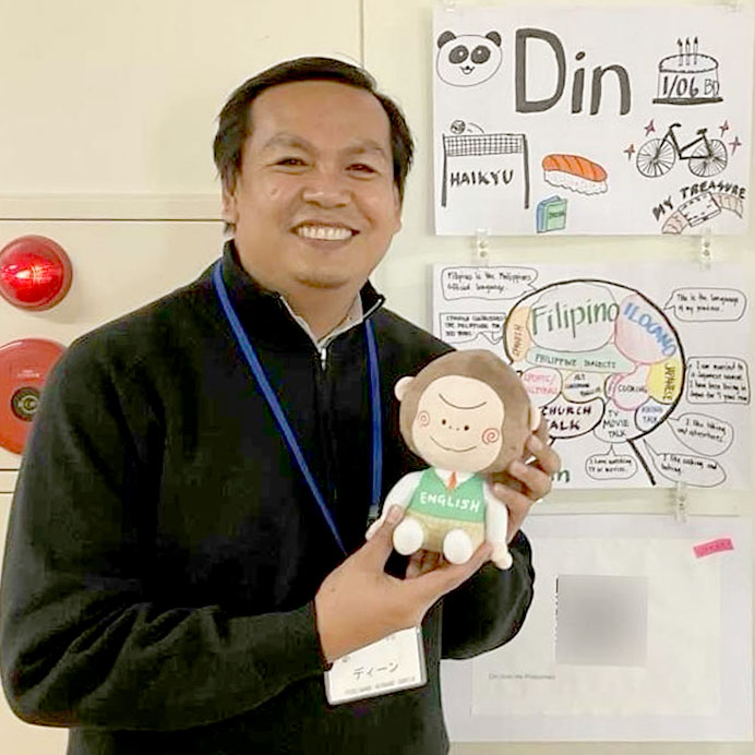 そして、英語の授業をサポートしてくれるのは、フィリピン出身のALT、Din Garcia(ディーン・ガルシア)先生です!